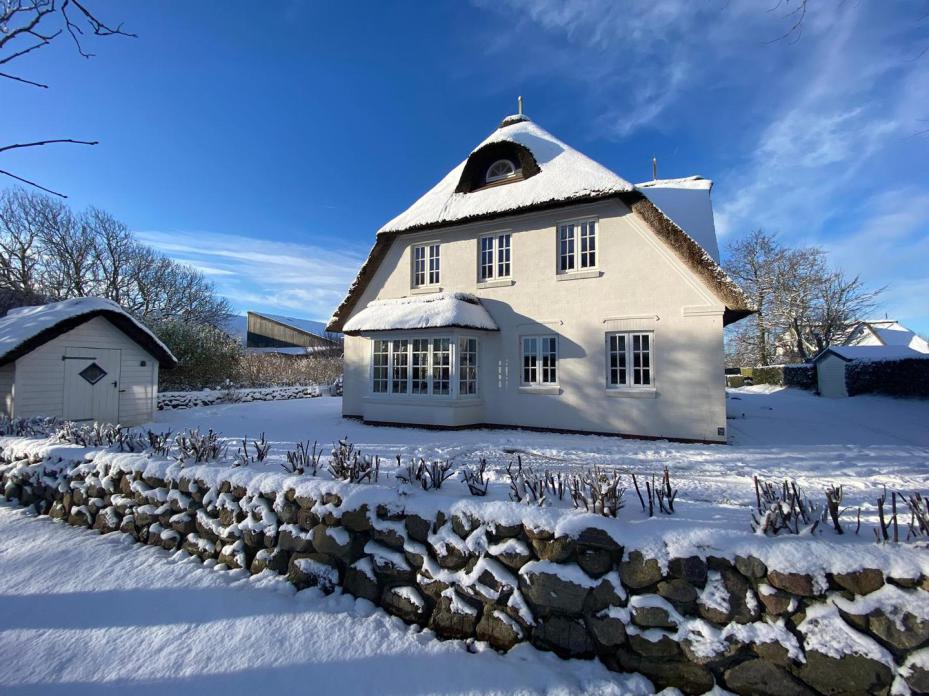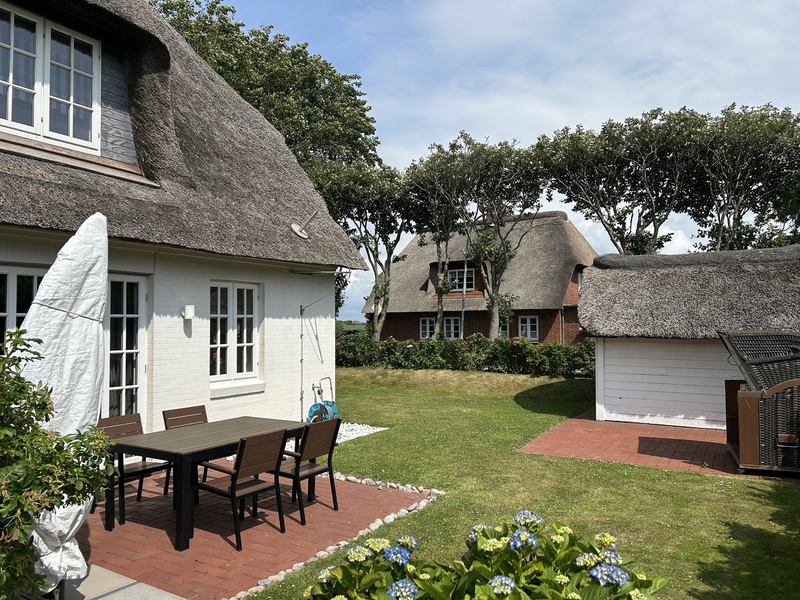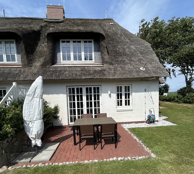 Freuen Sie sich auf eine gemütliche komfortable Doppelhaushälfte mit vielen friesischen Elemante. Z. B. außen Reetdach, weiß getünchtes Mauerwerk, Holzsprossen-Fenster, Friesenwall und Strandkorb. In einem attraktivem Doppelhaus-Zweier-Ensemble, neben dem ebenfalls in weiß gestalteten historischen Deichhof. Dazu eine inseltypische Reetdachhütte, die Ihnen zusätzlichen Stauraum bzw. einen Abstellplatz für Ihren "Urlaubs-Fuhrpark" bietet und in der Sie die Gartenmöbel-Auflagen sowie unseren Elektro-Terrassengrill finden.